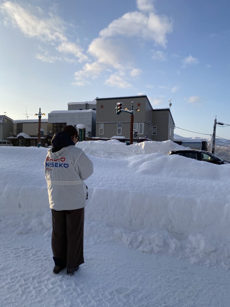 そして、ニセコの積雪量と除雪技術に驚くばかりです。本日の中継先の綺羅街道の歩道にある街灯も、半分以上が雪で覆われていました。私の住んでいる北広島市ではこのような光景は見たことがありませんでした。それから、その雪を綺麗に回収する除雪技術。道のがたつきもかなり少なく、運転や歩きやすい道路になっていて感動しています。