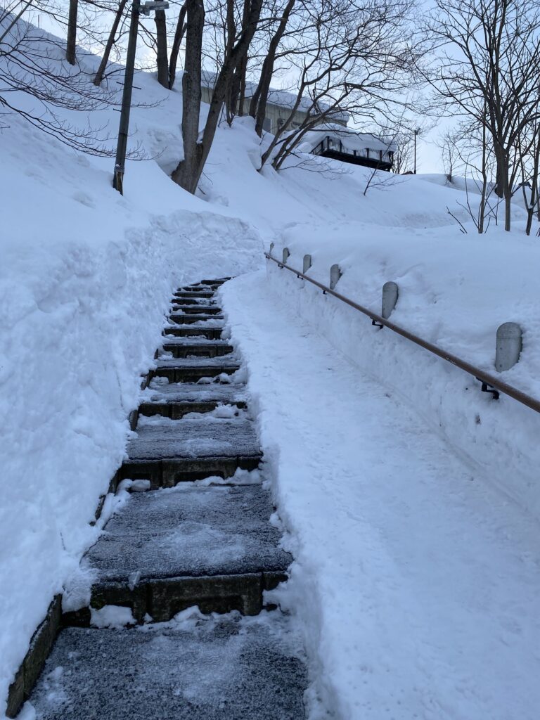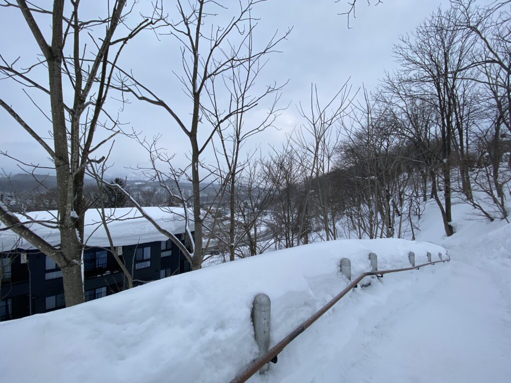 JRニセコ駅前の長い坂道を上る途中、左側にある、富士見地区への近道として使われることも多い坂。